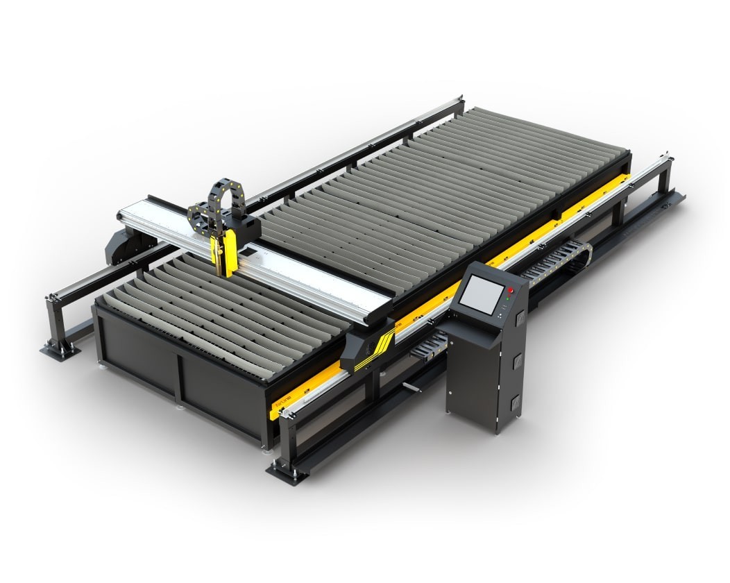 ⁃ рабочее поле (ДхШ) 6000х2000 мм; ⁃ 12ти секционная система вытяжки (пневматика) – полное удаление газа; ⁃ портал независим от стола; ⁃ промышленное ЧПУ UCCNC , ⁃ источник плазмы Hypertherm (любой на выбор из серии Powermax (45,65,85,105,125 или MaxPro200).